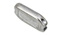 Tensor metálico con sistema de fijación para cables tensores de acero en instalaciones agrícolas o técnicas.
